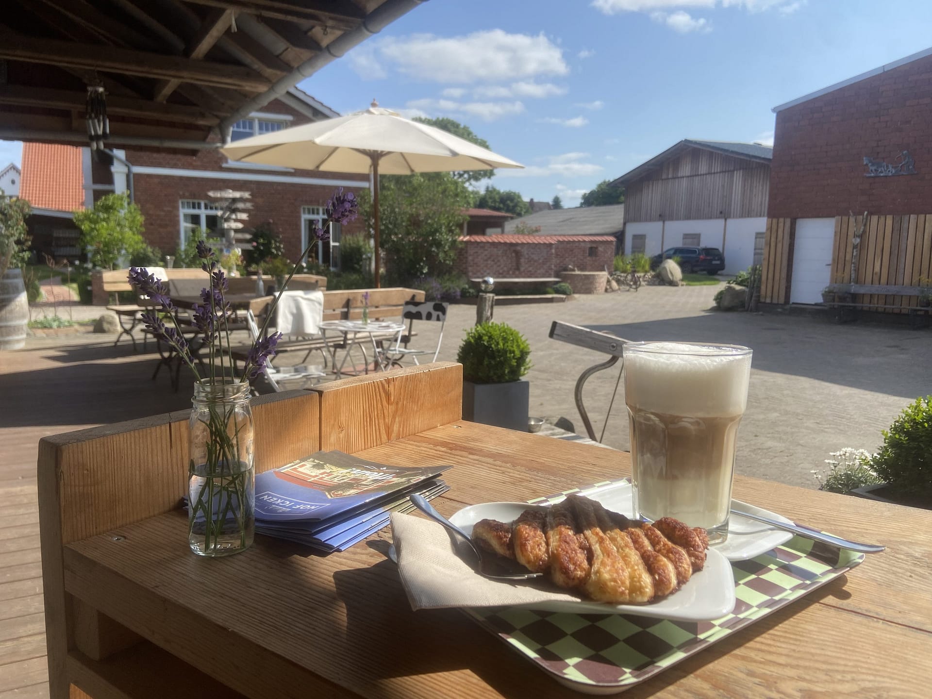 In den Sommermonaten lädt unser Hofcafé mit großer Terrasse zum Kaffeetrinken und Verweilen ein. Besuchen Sie uns und erleben unser Hofleben hautnah!