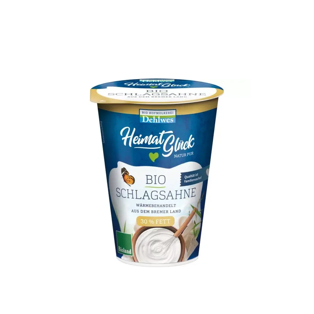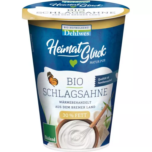 HeimatGlück – Bio-Schlagsahne mit mind. 30 % Fett, pasteurisiert und wärmebehandelt.