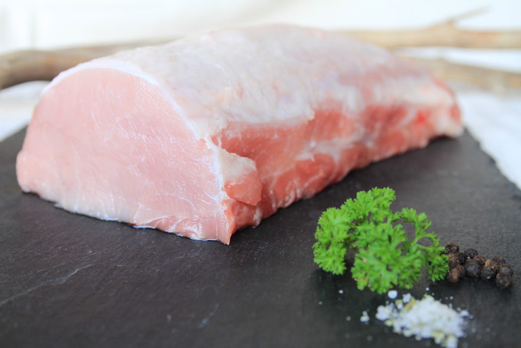 Rücken / Lachs von unseren hofeigenen Schweinen aus dem Offen-Stroh-Stall mit viel Platz, Frischluft und Tageslicht