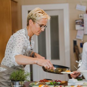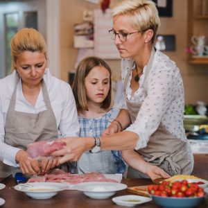 Der kulinarischen Herausforderung stellen sich: Bärbel Feddersen aus Nordfriesland, Wiebke Icken aus dem Cuxland an der Nordsee, Ve Spindler aus Südwestmecklenburg, Sylvia Bracker aus Mittelholstein, Dirk Endrulat aus der Schaalseeregion und Ute Kuhlmann aus der Lüneburger Heide.